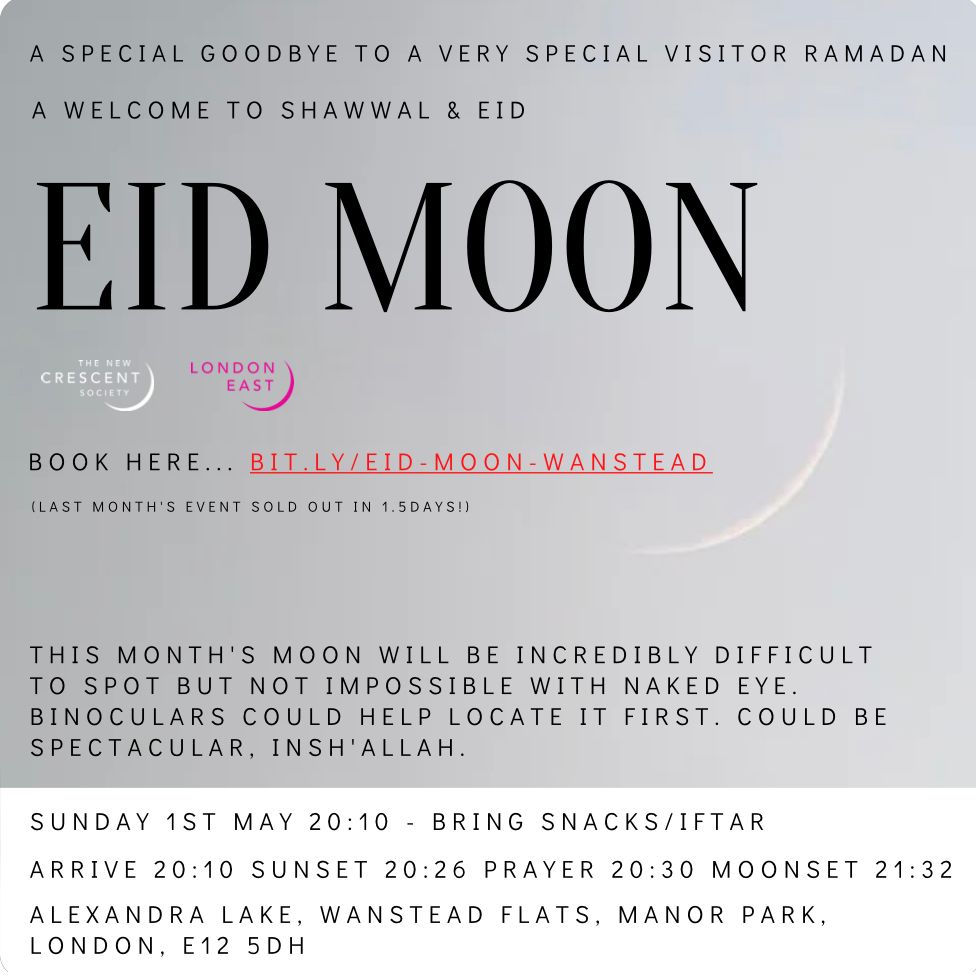 Leytonstone Masjid encourages sighting the moon locally on the evening of Sunday 1st May 2022 for the 1st of Shawwal (Eid al Fitr).