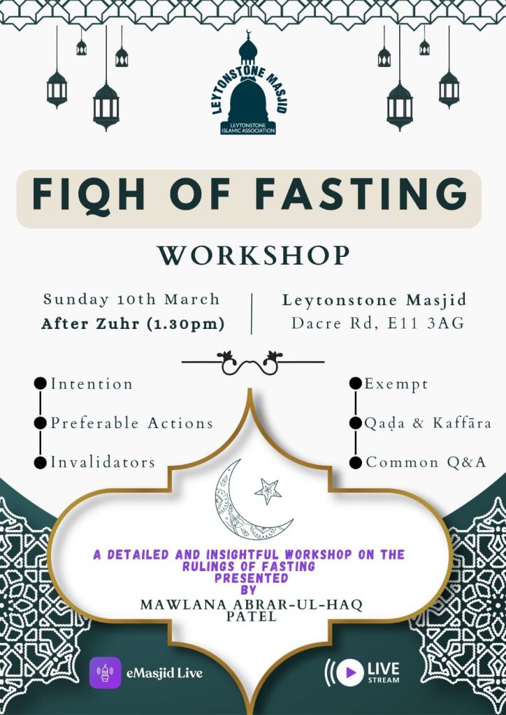 Fiqh of Fasting WorkshopPublished by Communications on Tue 5 March 2024Tue 5 March 2024 Categories: AnnouncementIslamic Programmes