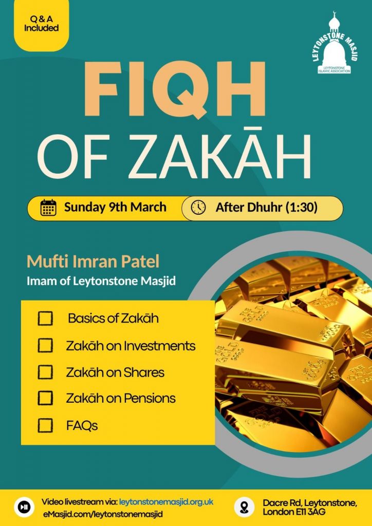 Fiqh of Zakah Seminar | Sun 9th March | Watch ReplayPublished by Communications on Wed 5 March 2025Wed 5 March 2025 Watch Replay – Click Here Categories: AnnouncementEventFeaturedIslamic Programmes