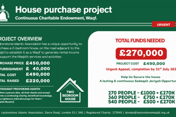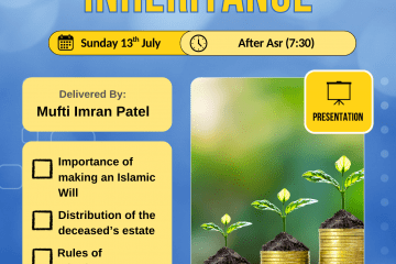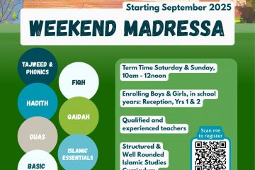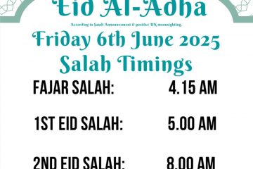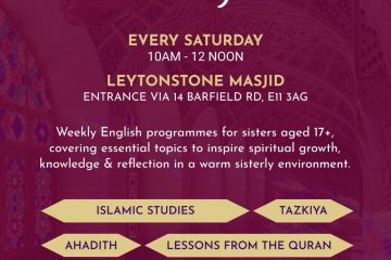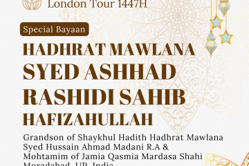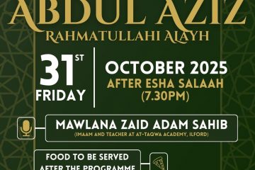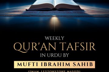Programme Day/Time Qur’an Tafsir in English by Mawlana Abrar ul Haq Mondays after Asr Qur’an Tafsir in Urdu by Mufti Ibrahim Wednesdays after Asr Bayaan before Jummah Khutbah Fridays @ 12.55 Women’s Weekly Sessions:Qur’an, Fiqh and words of advice. Saturdays 10am-12noon Dars e Hadith Sundays Read more…