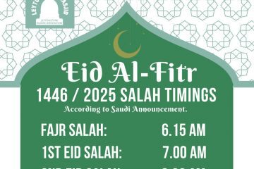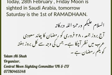 1st Ramadhan 1446 will be on Saturday 1st March, with Taraweeh starting in the evening of Friday 28th February 2025.