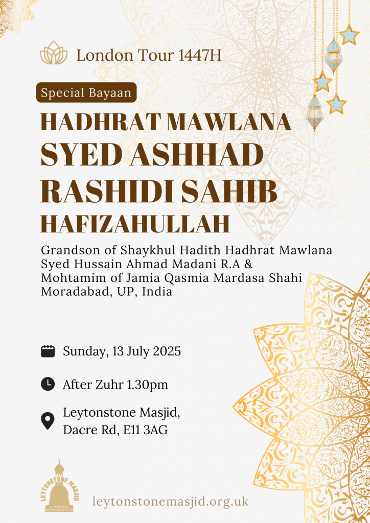 Special Bayaan | Sun 13th July 2025Published by Communications on Sat 21 June 2025Sat 21 June 2025 Categories: AnnouncementFeaturedIslamic Programmes