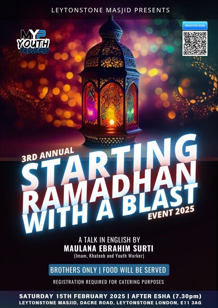 Starting Ramadhan with a blast | Sat 15th Feb – Maulana Ibrahim SurtiPublished by Communications on Mon 3 February 2025Mon 3 February 2025 Register Categories: AnnouncementEventFeaturedIslamic Programmes