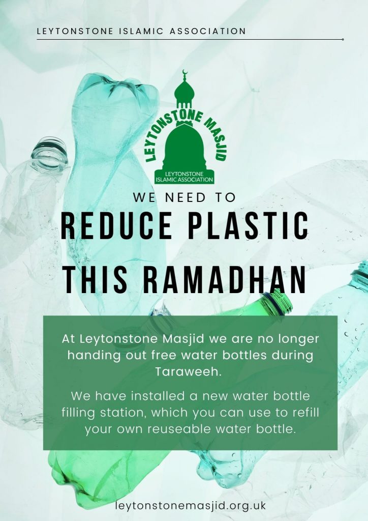 In an effort to reduce plastic waste, Leytonstone Masjid will no longer be handing out free water bottles during Taraweeh.