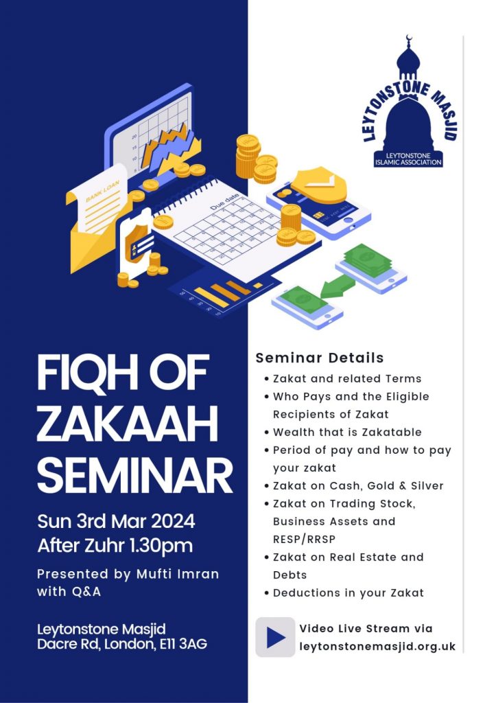 Zakaah Seminar: Sun 3rd MarchPublished by Communications on Mon 26 February 2024Mon 26 February 2024 Categories: AnnouncementFeaturedIslamic Programmes